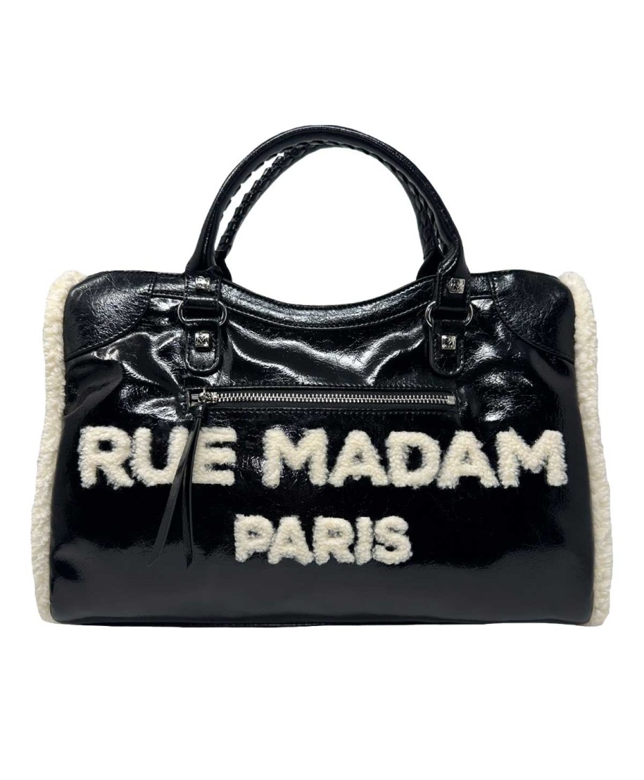 Borsa in ecopelle nera e teddy bianco con tracolla.