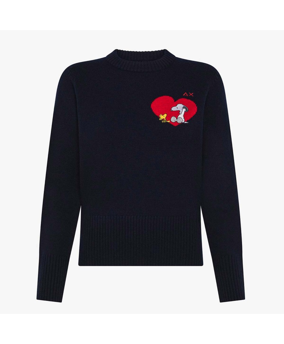 - Motivo cuore jacquard con patch Peanuts e logo SUN68